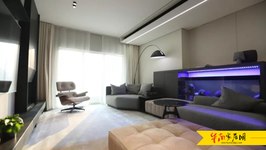 可开可合的隔断设计,为于女士打造出开放而不失私密的舒适空间,而将茜茜的房间靠里,则为她带来更多安全感。同时,旋转楼梯、弧形“蛋壳”、“空中花园”、生态鱼缸、壁炉等设计,点缀了空间,也增加了布局的趣味性。