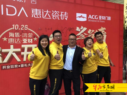 惠达瓷砖国内营销中心总经理孔智勇先生、广州亚材门窗幕墙有限公司营销总监颜军先生、惠达瓷砖区域经理何国彬先生、广州亚材门窗幕墙有限公司华中湘区域经理王俊龙先生、海思商贸有限公司总经理何勤先生以及所有行业朋友、业主朋友等共同见证了开业盛典。