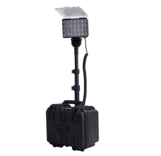 便携式移动照明系统可60秒快速组装,带拉杆滑轮可单人操作携带,其伸缩杆采用高强度合金材料,可靠耐用、高度可调、灯头可多角度旋转。