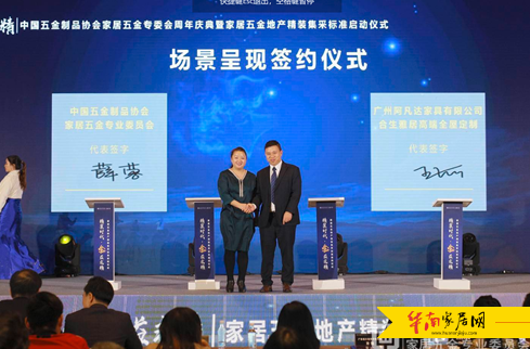 年度场景呈现签约仪式:家居五金专委会与广州阿凡达家具有限公司(合生雅居高端全屋定制)