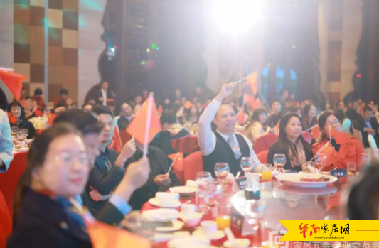 晚宴伊始,象征着“家居五金有传承”的家居五金专委会秘书处全体工作人员的五位小朋友登上舞台,带领全场嘉宾,共同高歌一曲《我和我的祖国》,为中国五金一起加油。晚宴现场,500面红旗随着歌声飘扬,呈现出浓浓的爱国氛围。