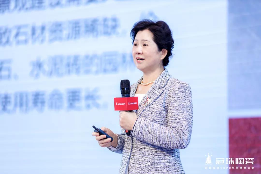 集团副总裁兼产销委主任彭新峰在会议上作“智能新产品 · 赋能新营销”主题演讲。彭总在演讲中对2020年新明珠陶瓷产品战略进行了详细的部署,她强调:“没有永恒的企业,只有‘时代的企业’,我们未来在产品研发方面,要顺应新消费者的需求,从装饰性向功能性突破,真正解决发热、清新、防滑、城市绿化功能等问题,这将会是一片全新的市场蓝海。”