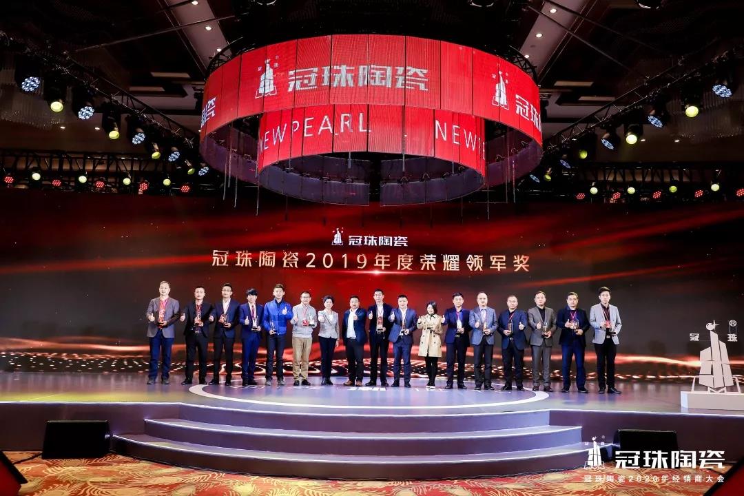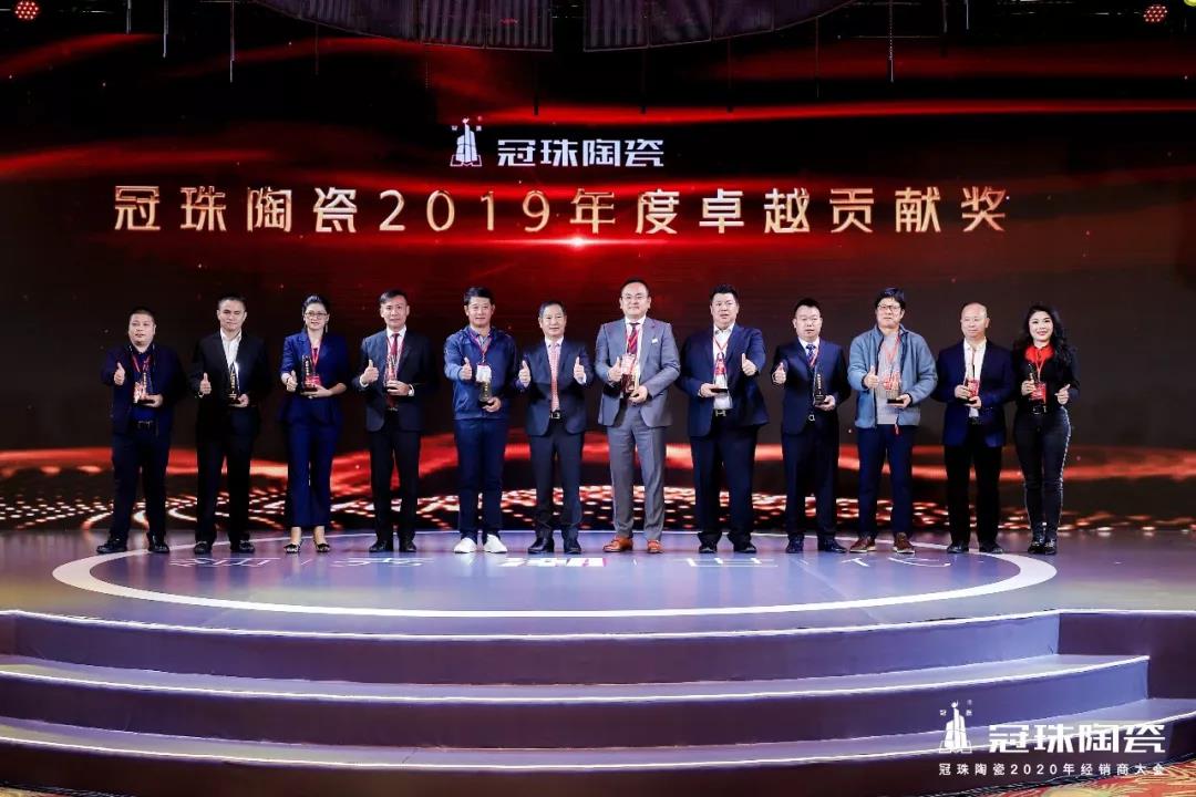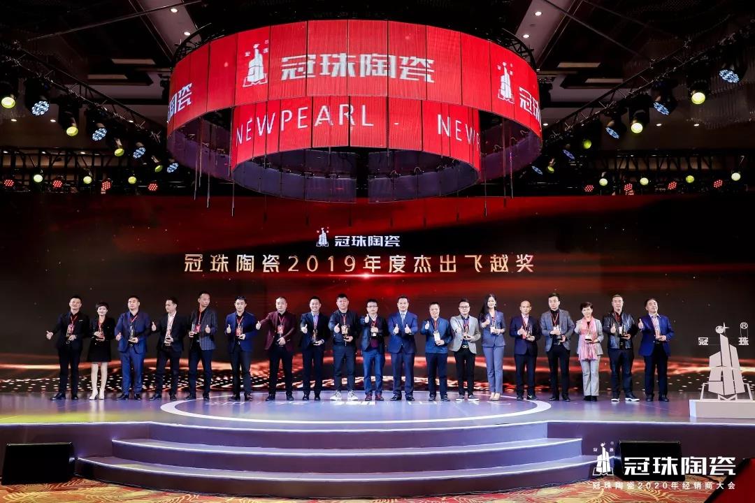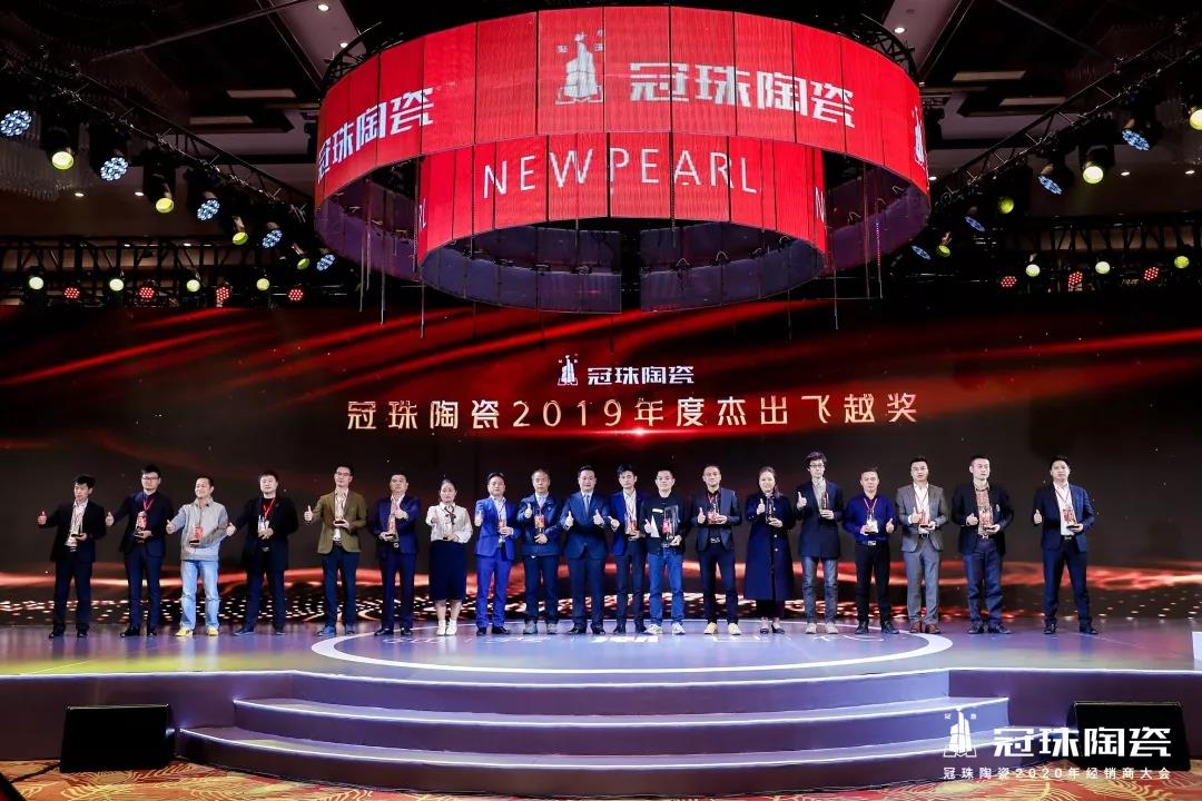 冠珠陶瓷26年的发展,正是因为有一批批优秀的经销商,才能在全球市场越做越大,越做越强。会上,新明珠陶瓷集团对2019年年度表现优秀、成效突出的经销商伙伴进行了表彰,评选出形象优胜奖、杰出飞越奖、荣耀领军奖和卓越贡献奖。