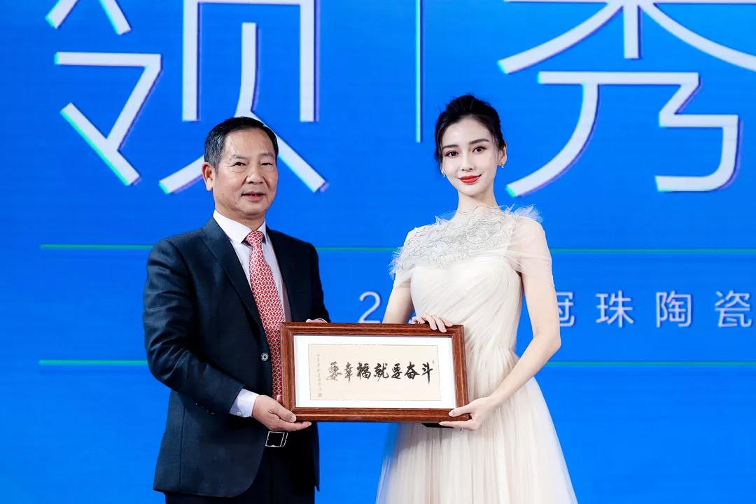 新明珠陶瓷集团董事长兼总裁叶德林为Angelababy赠送礼物