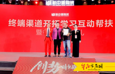 为鼓励经销商之间进行终端渠道开拓学习互相帮扶,新中源陶瓷营销总经理陈勤显授予南昌新中源陶瓷董事长龙斌,“新中源杰出导师”的荣誉证书,以表彰他乐于分享、倾囊相助的美德。