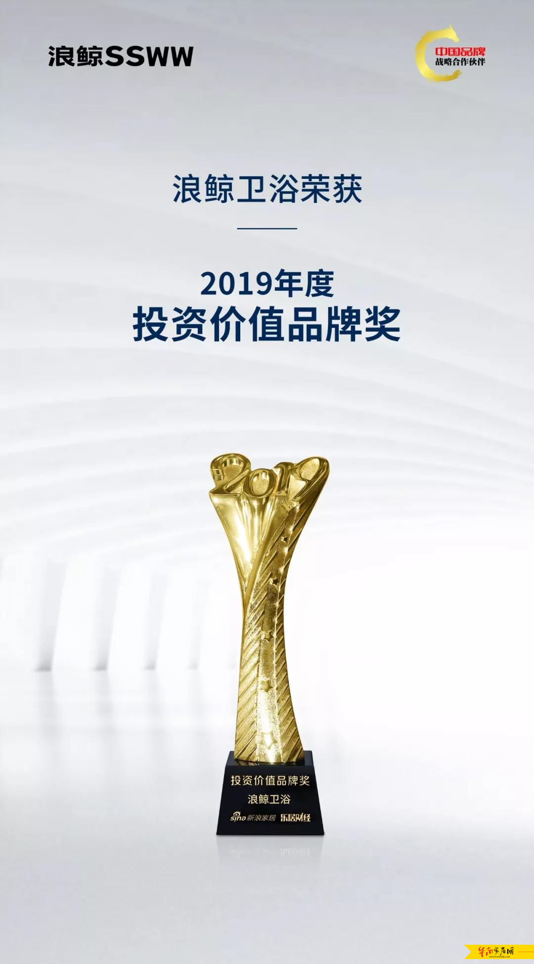 再获荣耀!浪鲸卫浴荣膺“2019年度最具投资价值品牌奖”