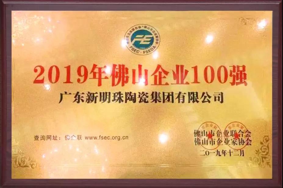 2019佛山企业100强发布,新明珠陶瓷集团荣登榜单