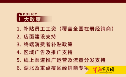 宏宇陶瓷1亿元现金力挺全国经销商,推出6项重大政策,包括:
