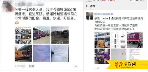 疫情暴发以来,来自海内外的海量资金和物资捐助源源不断,但是苦于物流瓶颈,捐赠并不顺畅,跨越速运凭借自身物流资源优势,为救援物资“最后一公里”保驾护航。对此,黄冈本地的志愿者王文裕发微博:跨越速运载着物资,千里驰援武汉,驰援黄冈,感谢,点赞!