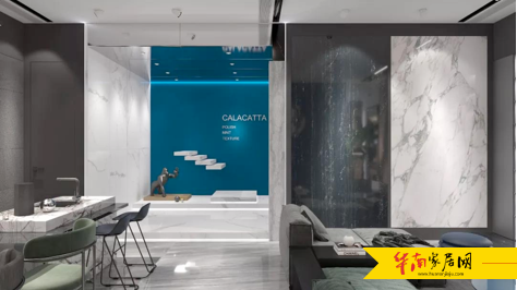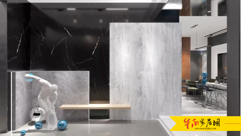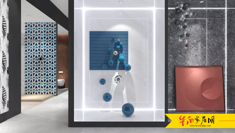 直板的简洁,直观展示了LA'BOBO陶瓷薄板在墙面的应用效果,不同产品叠加展示,更增加了空间的层次感。