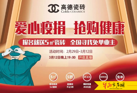 疫情阴影之下,一场没有硝烟的战争席卷每个人,也考验着整个陶瓷行业。面对困局,高德瓷砖扛起公益大旗,推出“爱心疫捐·抢购健康”线上直播活动,号召全国消费者为抗击疫情贡献一份力量,同时推出多项优惠套餐回馈消费者,活动受到264382人次转发关注。