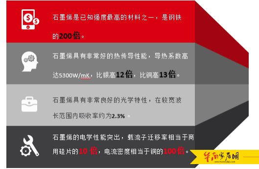 2004年,英国曼彻斯特大学物理学家安德烈·海姆和康斯坦丁·诺沃肖洛夫,成功地从石墨中剥离出石墨烯,并表征了它的性质,两人也因“在二维石墨烯材料的开创性实验”为由,共同获得2010年诺贝尔物理学奖。“黑金”和“新材料之王”的美誉并不是浪得虚名,石墨烯拥有着其他材料无法比拟的自身优势。