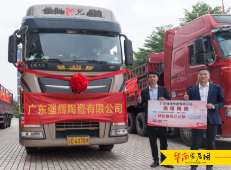 大爱无疆,情系凉山,强辉积极响应国家“坚定不移打赢脱贫攻坚战”号召,发挥自身产业优势,捐赠价值480万元瓷砖,为带动四川凉山地区发展,走上脱贫致富之路贡献出一份力量。