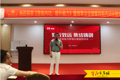 8月22日,将军企业举行《知行致远,集结铸剑》内部强化赋能培训会,本次培训由将军企业营销总经理谭肖文支持,内容主要围绕岩板生产流程、将军岩板产品概述、产品营销与渠道、加工应用等方面系统的展开,谭总以幽默互动的课堂方式为学员们深入浅出地介绍了品牌定位和未来发展方向,让学员们对将军岩板有了深入的认知。同时结合多年实战经验,对产品渠道、营销策略等方面进行多维度、深层次讲解,实用的课程赢得了岩板事业部的一致认可。