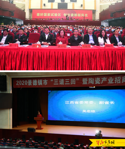 2020年10月17日,景德镇市“三请三回”暨陶瓷产业招商推介会在景德镇市紫晶宾馆一号楼会见厅举行,江西省委常委、副省长吴忠琼,省政府副秘书长熊科平,市长刘锋,市人大副主任唐良,副市长孙鑫、徐耀纯出席,省商务厅厅长谢一平主持会议,金意陶董事长何乾受邀参与此次活动。