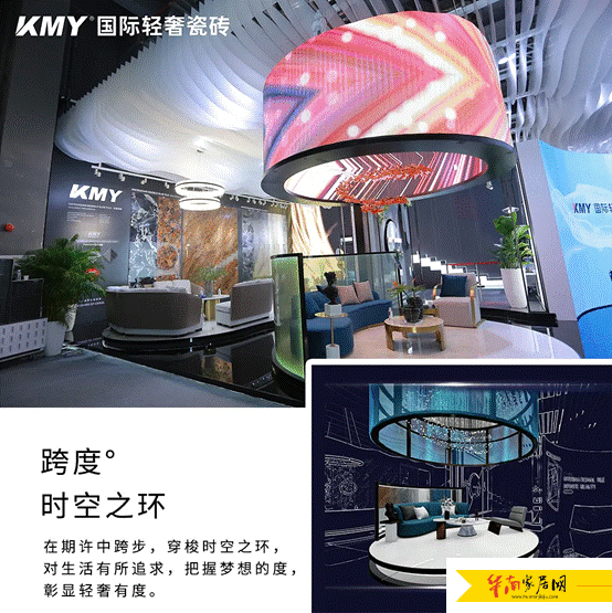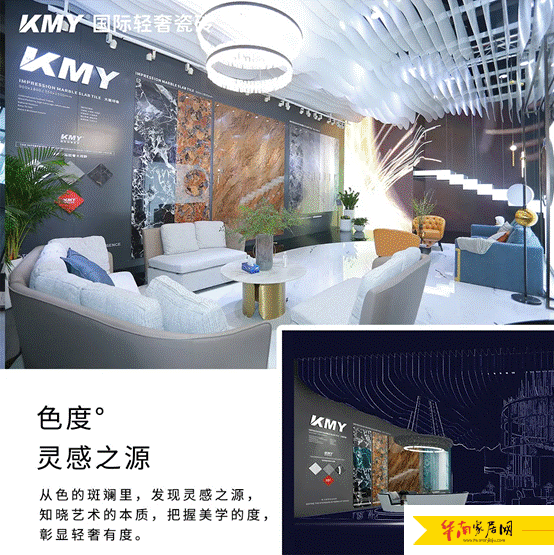色度°灵感之源,则颠覆了黑白灰的高冷色调。KMY奢度°国际馆产品区展示的『大板印象』系列,色调丰富,纹理极富视觉冲击力,营造出强烈的观感体验空间,启发人的美学灵感,让创意得到无限延伸。