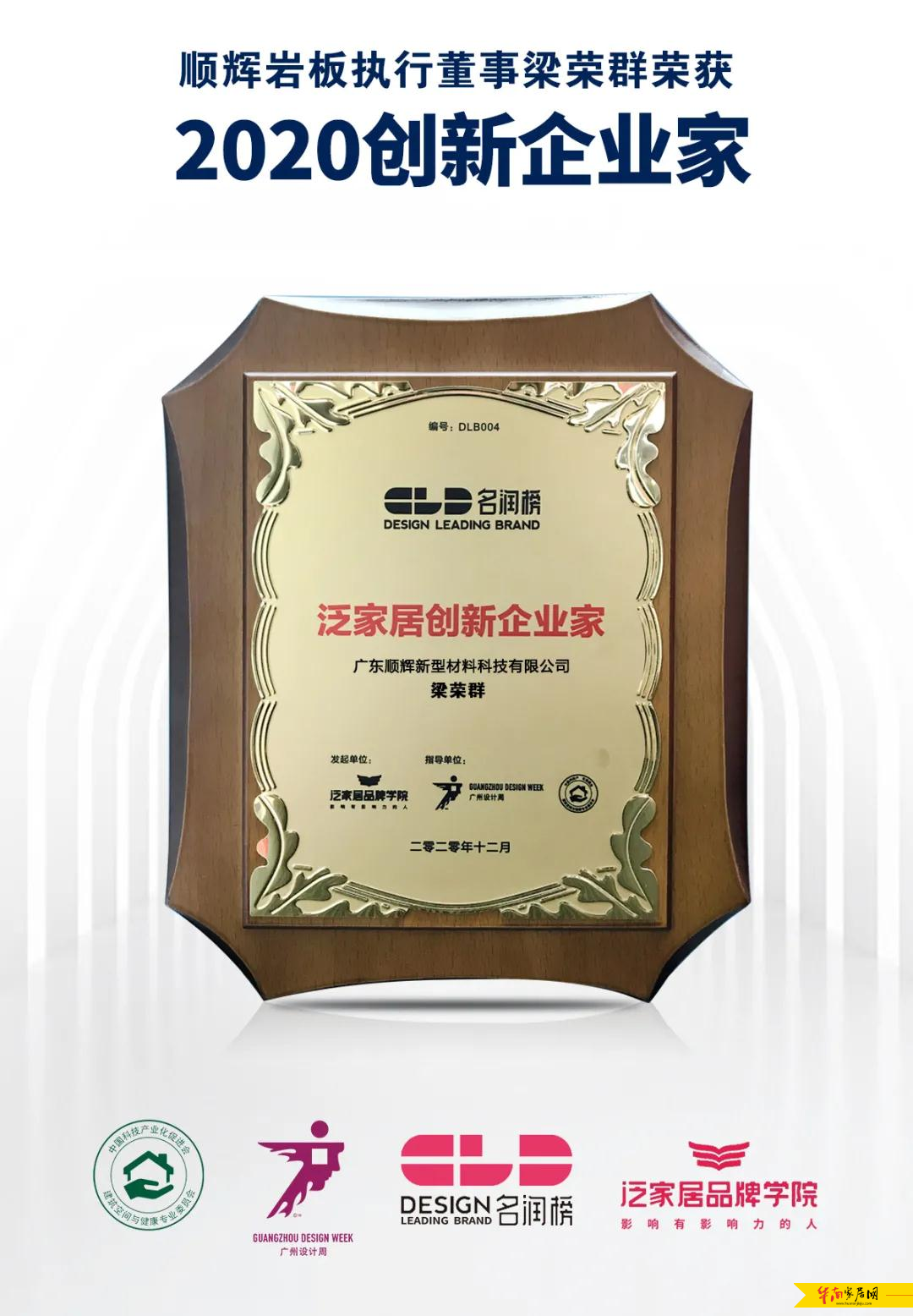 同期,泛家居品牌学院年度大会暨名润榜颁奖典礼,也在广州保利世贸展览馆隆重举行。顺辉岩板凭借着强大的品牌影响力,在大会中荣膺“2020名润榜-亚太泛家居设计先行品牌”。执行董事梁荣群荣获2020名润榜-创新企业家。