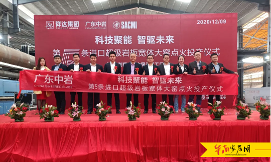 (华南家居网讯)科技聚能,驱动未来!2020年12月9日,广东中岩第五条进口超级岩板宽体大窑点火仪式在恩平现代化岩板生产基地落下帷幕!