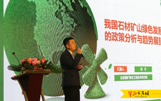 北京绿矿联合工程技术研究院执行院长张宇则为大家带来了一场关于石材绿色矿山高质量发展的演讲。他表示,建设绿色矿山不仅是矿山企业经营管理方式的一次变革,也是树立良好企业形象、提升企业文化、履行社会责任的重要手段,更是规范促进矿地和谐、实现矿山健康可持续发展的重要动力。企业应以生态为导向,加强环境体系建设和云控平台建设,通过生态平台、产业平台、贸易平台、企业平台的良性循环,实现资源效益、经济效益、环境效益、社会效益共赢。