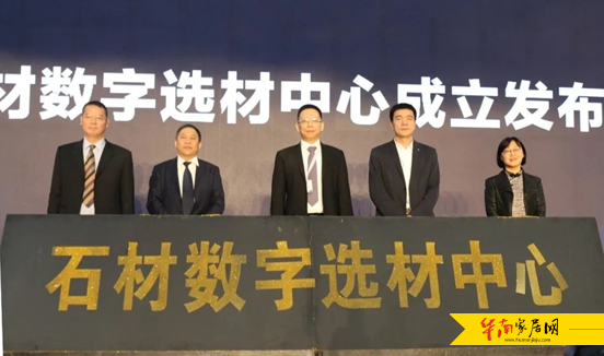 (朱连滨、乔亚玲、姚刚、熊俊杰、吴振强等,共同宣告石材数字选材中心正式成立)
