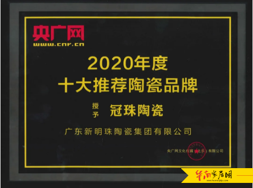 冠珠荣获央广网2020年度十大推荐陶瓷品牌
