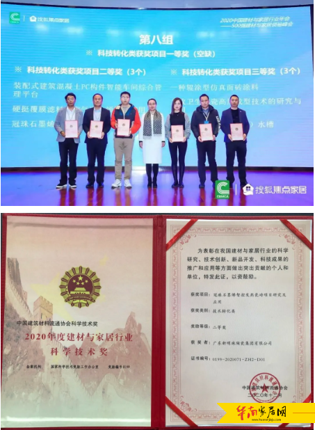 荣获2020年度建材与家居行业科学技术转化类二等奖