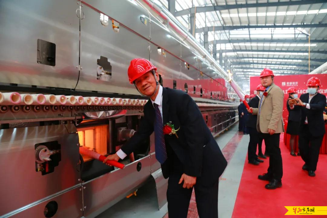 成功点火的新生产线,将生产2400×1200(mm)和3600×1800(mm)为主的大规格特种高性能陶瓷岩板。