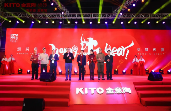 华灯初上,一场奋进人心的歌舞表演拉开了英雄夜宴的序幕。景德镇浮梁县体育中心,金意陶与各界嘉宾、全国经销商欢聚一堂,叙合作之谊,一起回首2020年奋战的点滴;话发展风向,研判未来建陶市场大势,共度一段欢乐惬意的美好晚宴时光。