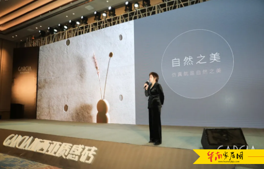 本次会议中最核心的亮点就是加西亚2021春季质感新品的发布,会上,集团产品总监陈自丽女士从艺术之美、自然之美、以及色彩之美三个方面讲解了全新一代极具差异化的质感产品。