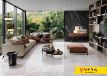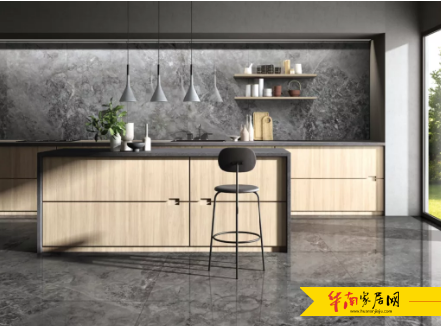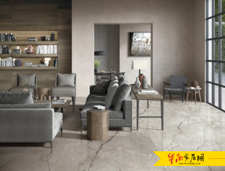 灵感源自天然石意大利云灰,铺贴效果延续了意大利的浪漫与艺术,搭配灰色、木纹家具更显质朴雅致。