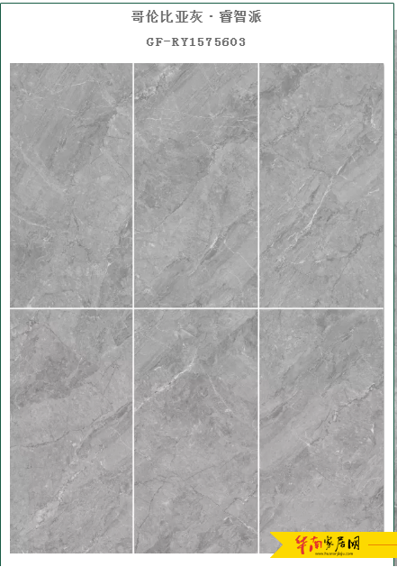 灵感源自天然石哥伦比亚灰,浅灰色与灵动的纹理结合,应用于家居空间自有一股潇洒自在、睿智时尚的韵味。