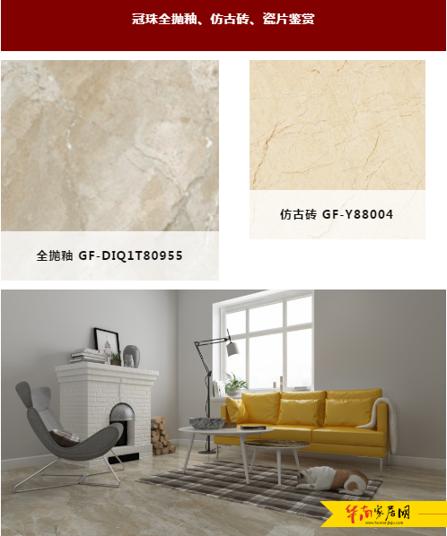 从全抛釉、仿古砖到瓷片,依托强大的智造实力,冠珠产品线、花式、规格多样,工艺丰富,优良的表面质感和物理性能,在家装和工程都有很好的表现。