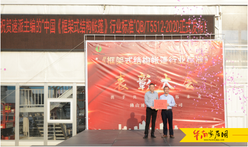 2016年国务院决定大力发展“装配式结构建筑、绿色环保建筑”并部署任务, 2021年1月1日由佛山企业主编的《框架式结构帐篷》行业标准实施,为篷房行业的健康可持续高质量发展树立了行业标准,同时也彰显出佛山企业在迈向高质量发展中的担当与责任。