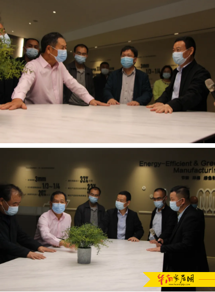 调研组对我司3200*1600超大规格大板(岩板)以及石墨烯智能发热产品的家居创新应用称赞有加,勉励我司紧跟社会发展脚步,紧贴消费者的需求变化,以用户为导向继续把产品做精做专,致力于打造标杆型企业,引领陶瓷行业绿色发展,为我国的生态文明建设做出应有的贡献。