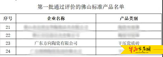 方向企业干压瓷质砖通过首批“佛山标准”产品评价