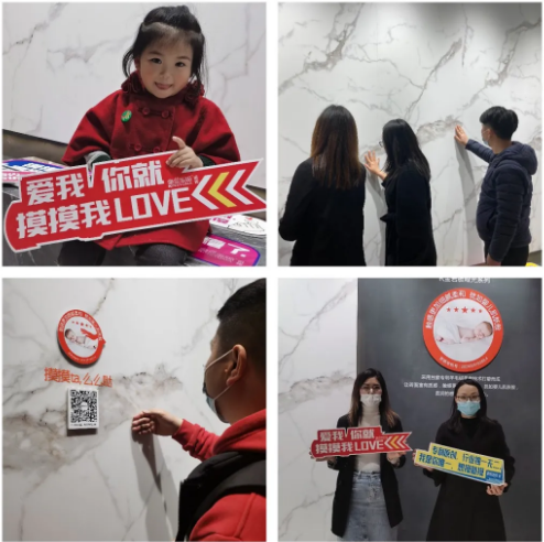 摸摸互动展示空间内的氛围非常火爆。附加了独特的[羊毛柔抛技术]的岩板取得了所有观众的认可与好评,手触碰瓷砖的一瞬间,纷纷被这种顺滑如婴儿肌肤般的触感所吸引。
