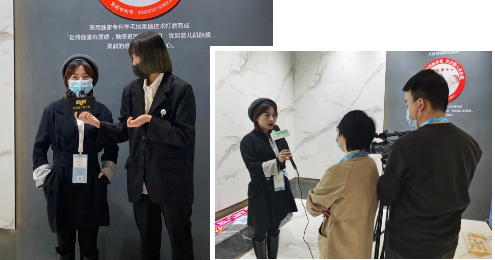 展会当日,金丝玉玛K金岩板馆的展馆主题设计以及风格惊艳全场,吸引了央视、中华陶瓷网、中国家居质量网、太平洋家居网等众多知名媒体前来采访,受到广泛的好评,揽获全场的焦点!