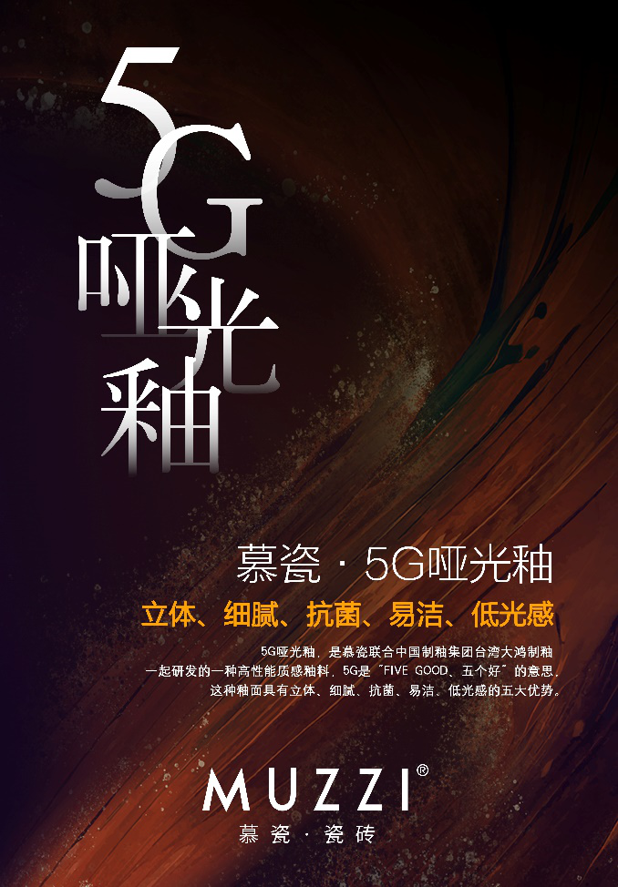 本次发布的新品锦·绣系列,在工艺上,使用的是慕瓷联合中国制釉集团台湾大鸿制釉一起研发的“5G哑光釉”。5G, 是“five good、五个好”的意思,这种釉料具有五大优势—立体、细腻、易洁、抗菌、低光感!哑光砖,它是一种回归,带给人们自然、简朴、舒适的空间,成为越来越多年轻人选择的产品。
