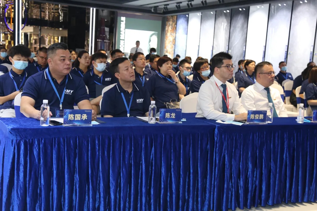 广东宏宇陶瓷控股有限公司销售副总经理梁慧才、KMY品牌事业部常务副总经理丁彬、北区销售副总经理谢昭东、南区销售副总经理陈俊鹏、市场管理中心副总经理黄国艺等总部领导以及KMY重点经销商代表齐聚一堂,共襄盛举。