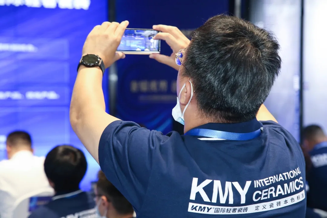 本次会议KMY全新推出3大系列、50+款新品,涵盖大板印象、银河系列星钻釉大板、岩板等品类,以新花色、新工艺、新规格,展现每款产品的设计理念以及其中蕴含的生活美学,为广大消费者的美好轻奢家居提供更多可能性。