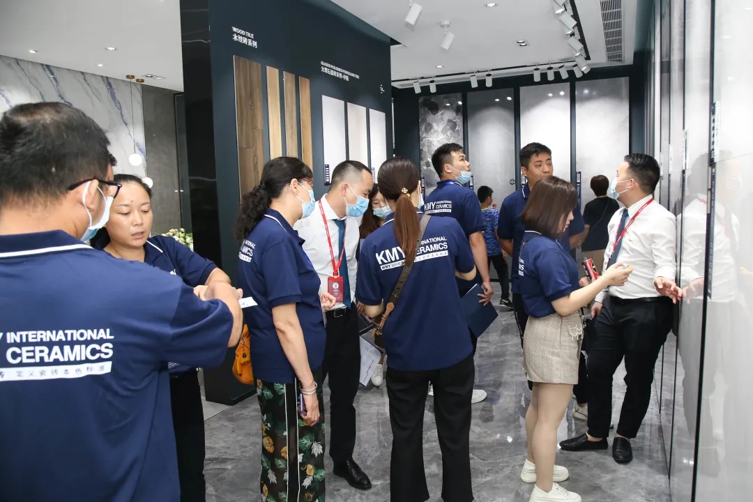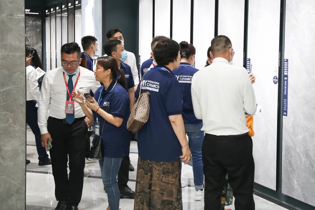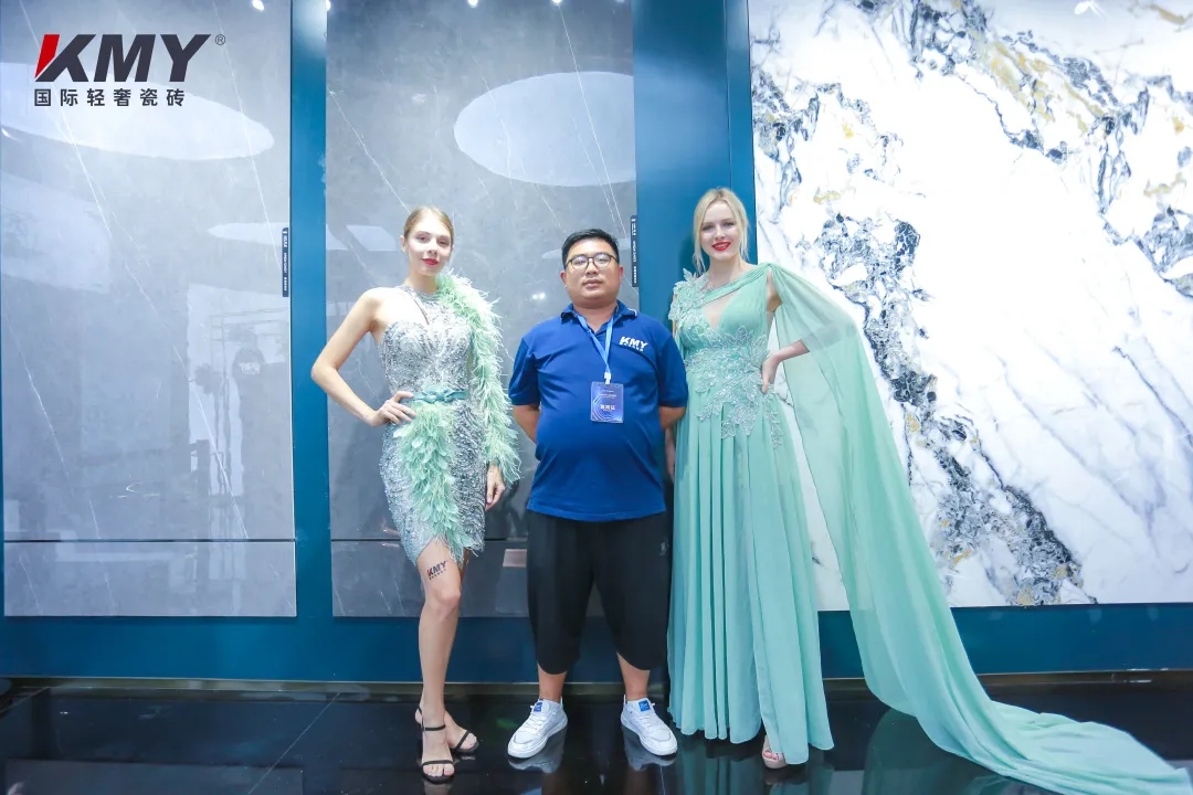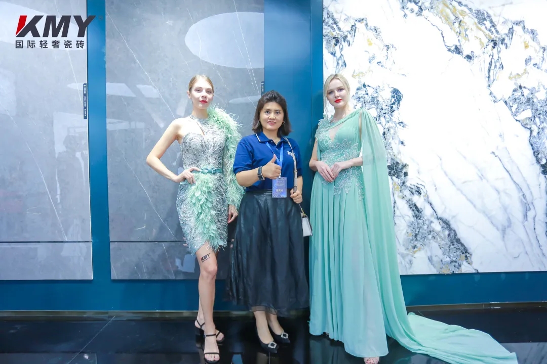 同时,藉着2021佛山潭洲陶瓷展参展之际,KMY品牌家人们前往潭洲会展中心进行参观鉴赏,并对KMY国际轻奢的品牌定位、展馆设计、沉浸式体验、现场演绎等表示一致好评。