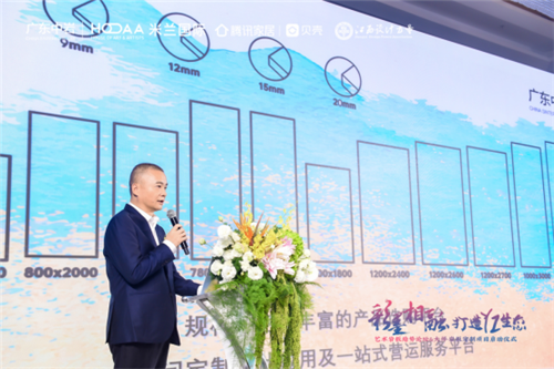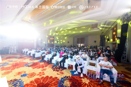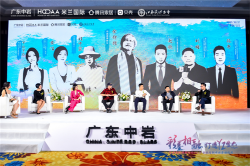 广东中岩董事长苏绍恒、中国家装教父余静赣、米兰HOAA国际艺术设计集团艺术总监刘俊松、中国设计力量创始人陈典、广东定制协会秘书长曾勇、广东省橱柜业商会秘书长钟娟以及多位大咖共同探讨岩板行业发展的大趋势、新走向——水彩陶艺术岩板,一起探寻中国岩板行业的新高度、中国建筑美学的新标杆、中国家居生活的新典范。