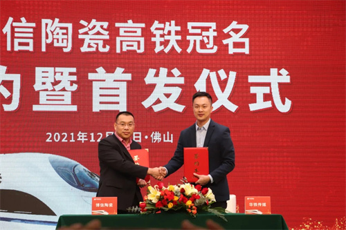 (华南家居网讯)2021年12月28日,广东省重点商标--博信陶瓷高铁冠名签约暨首发仪式在佛山——中国陶瓷总部基地隆重举行。集团销售总经理刘雪芹先生、企业销售总经理陈海强先生、品牌销售总经理李飞贤先生、博信陶瓷广东分公司黄友坤先生、博信陶瓷郑州经销商朱全锋先生、博信陶瓷磁灶经销商李加艺先生、华铁传媒以及众多媒体嘉宾,出席本次首发仪式,共同见证了博信陶瓷高铁专列的正式启程。
