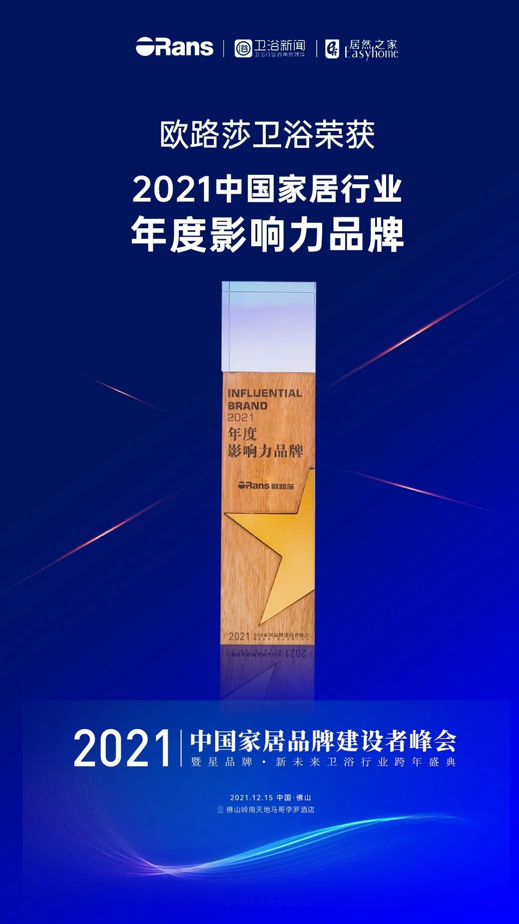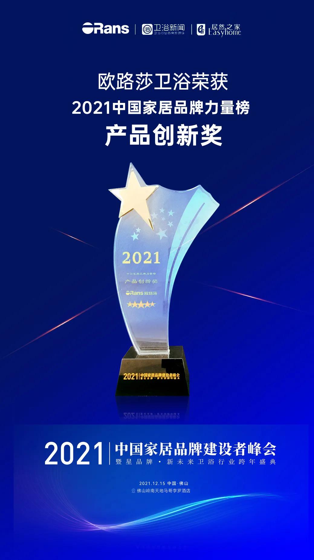 实力见证!欧路莎卫浴斩获2021中国家居卫浴品牌建设者峰会三项大奖