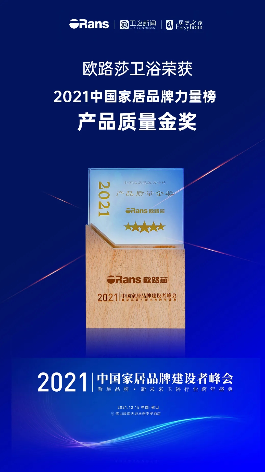 欧路莎卫浴斩获2021中国家居卫浴品牌建设者峰会三项大奖