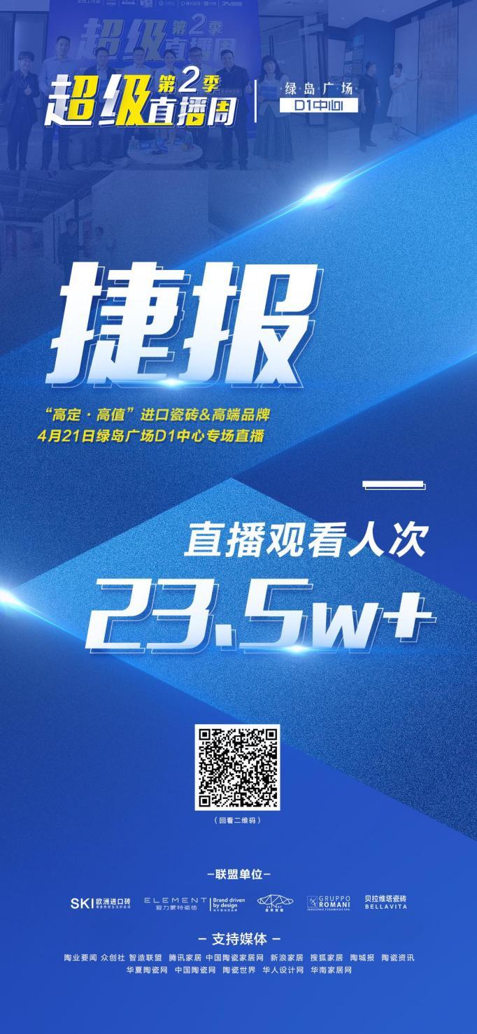 4月21日下午,超级直播周第2季——“高定·高值”进口瓷砖&高端品牌D1中心专场直播活动在绿岛广场D1中心19楼SKI欧洲进口砖展厅进行。