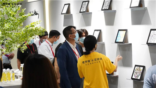 展会首日,凡到展位的来宾,都被展位的创意创作氛围吸引,纷纷拿起拿起画笔,在砖面肆意涂鸦,参与到忘情的创作之中。