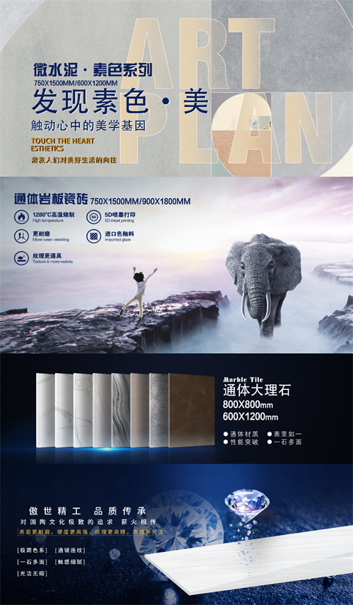 秉承独特的设计理念,以及尊重市场需求和趋势的考量,德莱利建立了从平面到肌理再到复合的工艺体系,并进一步优化产品规格配套,形成了清晰的产品定位梯度。其推出的极简系列、素色系列、通体大理石瓷砖系列、星钻石釉系列、通体岩板瓷砖系列等,从选材用料到制造工艺,再到产品设计,无一处不精致,无一处不出彩。