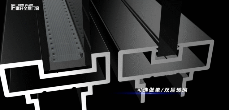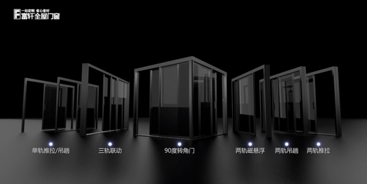 可做单轨推拉、吊趟、两轨推拉/吊趟/磁悬浮、三轨联动、90度转角门;不用觉得惊奇,富轩极简推拉门百变造型,满足您家不同空间的功能与审美需求。