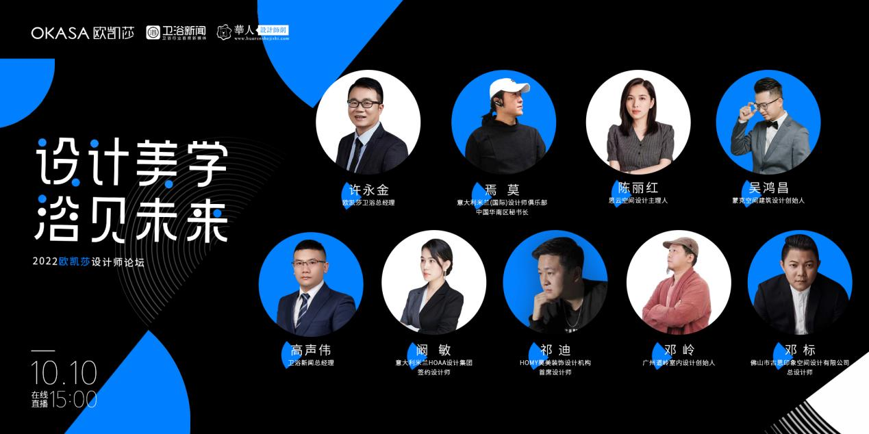 (华南家居网讯)10月10日,由卫浴新闻主办,华人设计师网提供战略支持的“设计美学·浴见未来”欧凯莎设计师论坛在欧凯莎卫浴总部隆重举行。欧凯莎总经理许永金、思云空间设计主理人陈丽红、蒙克空间建筑设计创始人吴鸿昌、HOMY昊美装饰设计机构首席设计师祁迪、意大利米兰(国际)设计师俱乐部中国华南区秘书长焉莫、古思印象空间设计总设计师邓标、卫浴新闻产业产区总经理陈龙、卫浴新闻主持人婉怡等各界大咖,就浴室设计的潮流趋势展开深入探讨。